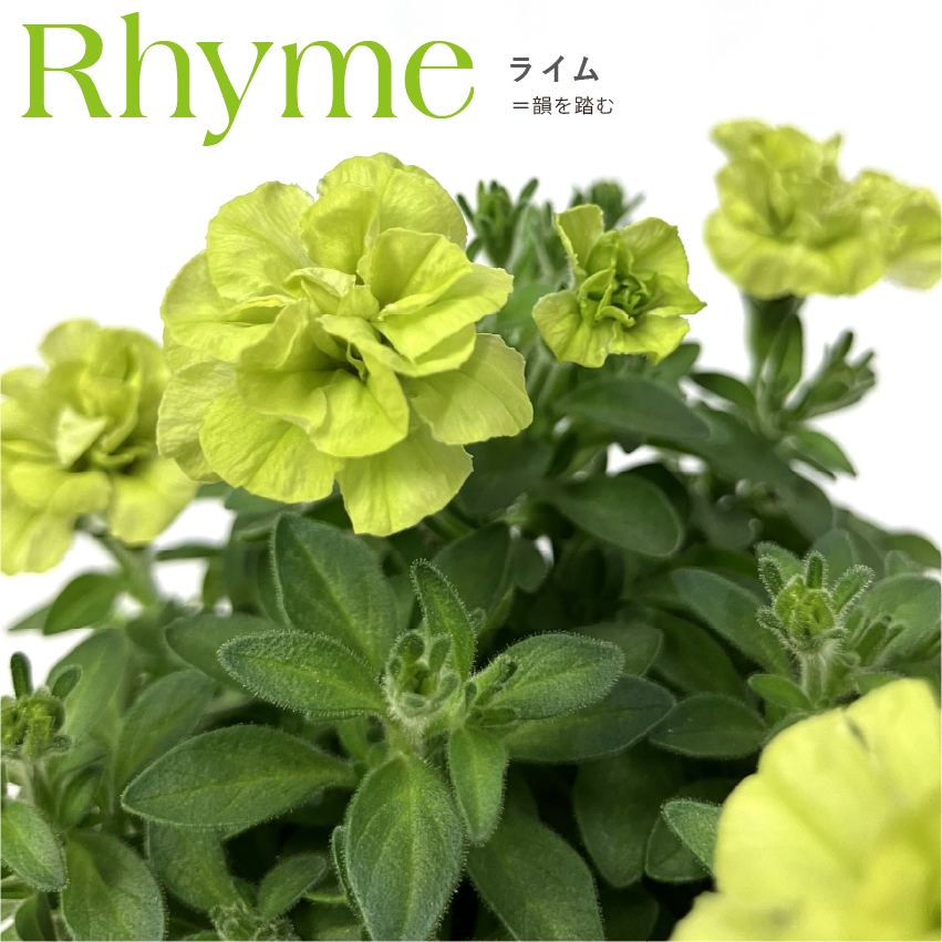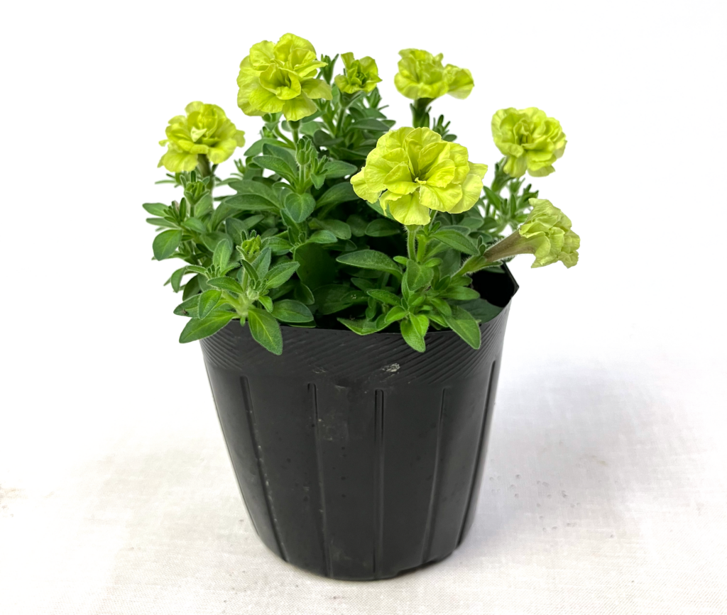 八重咲き・極小輪タイプ。花付き、花もちの良いペチュニア。花色は優しいライムグリーン。