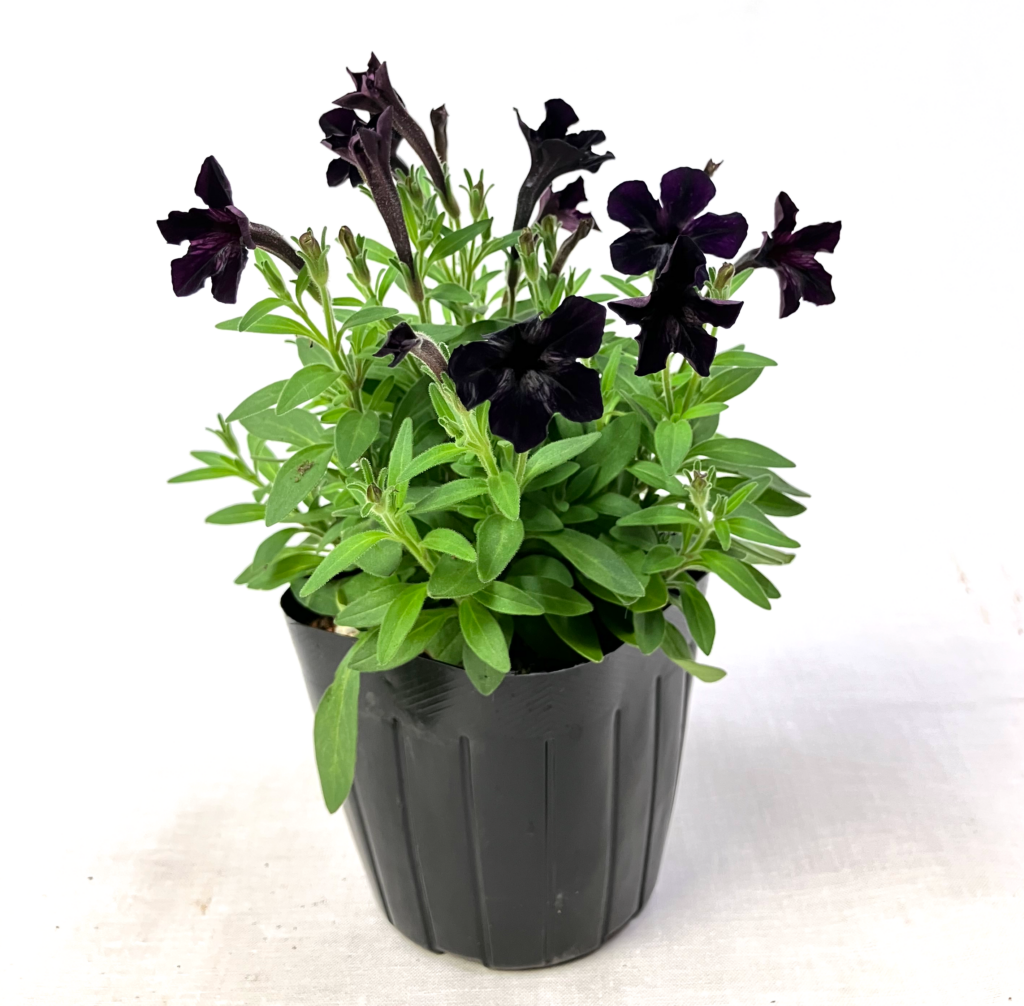 一重咲・極小輪・立ち性タイプ。花付き、花もちの良いペチュニア。花色は黒~黒紫。