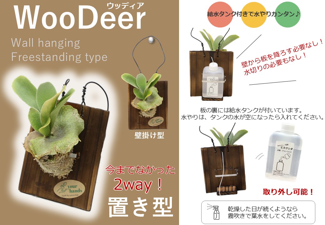 Woodeer(ウッディア)は今までになかった2wayタイプの板付コウモリランです。