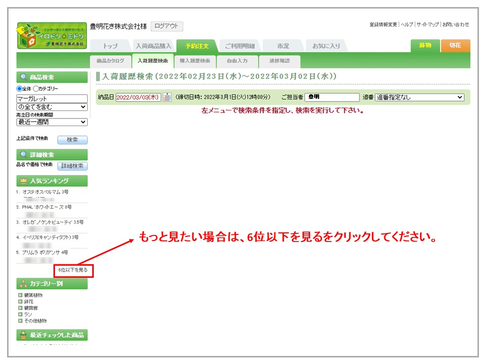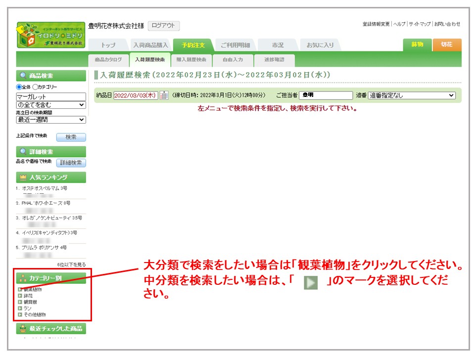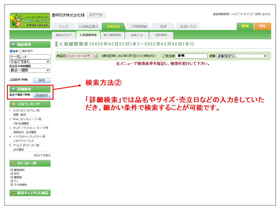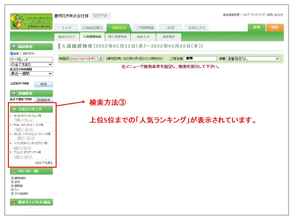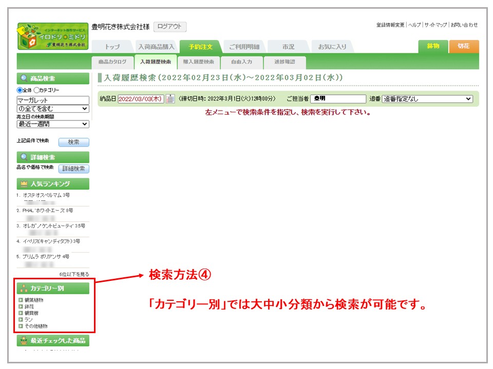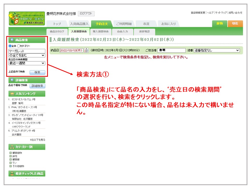 ※スマートフォンモードに「入荷履歴検索」機能がないため、利用される方は、パソコンモードでご利用下さい。