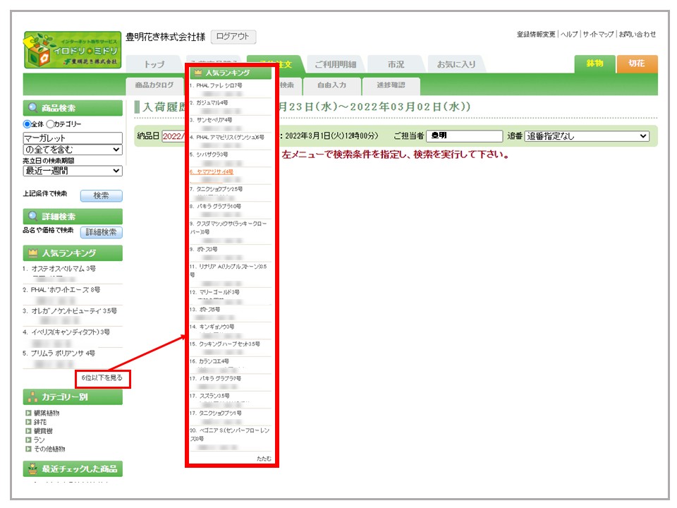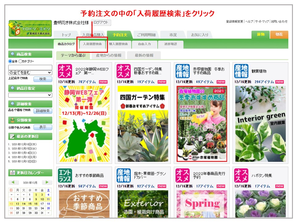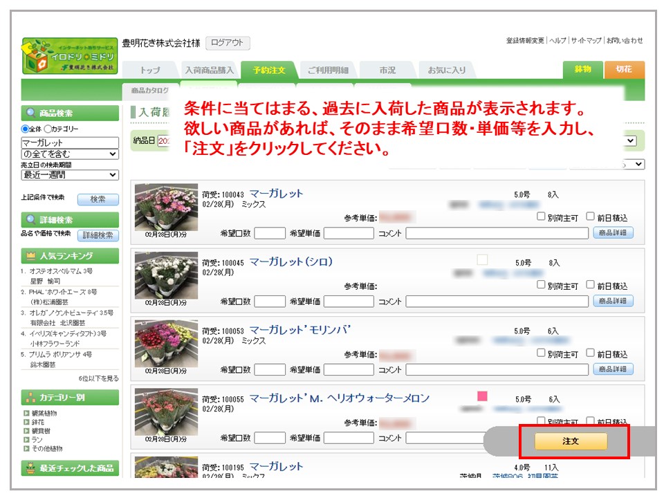 過去にどんな商品が入荷してきたのかを「予約注文」の画面から簡単に検索することが可能です。