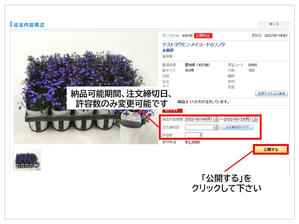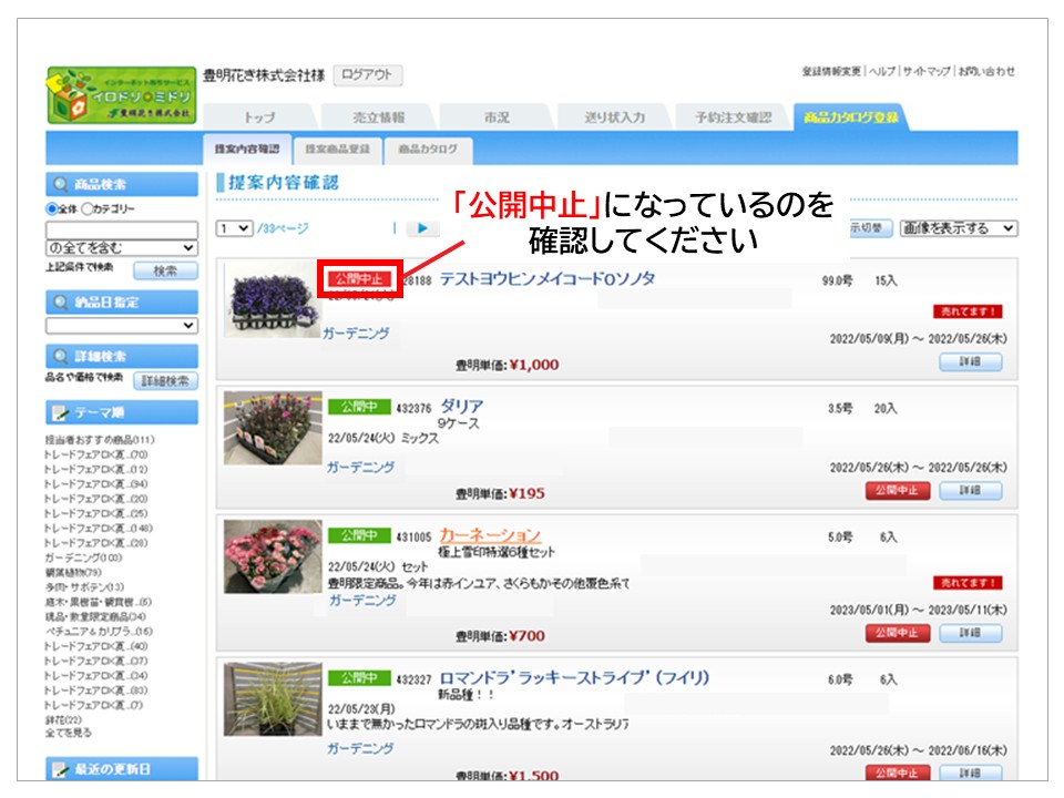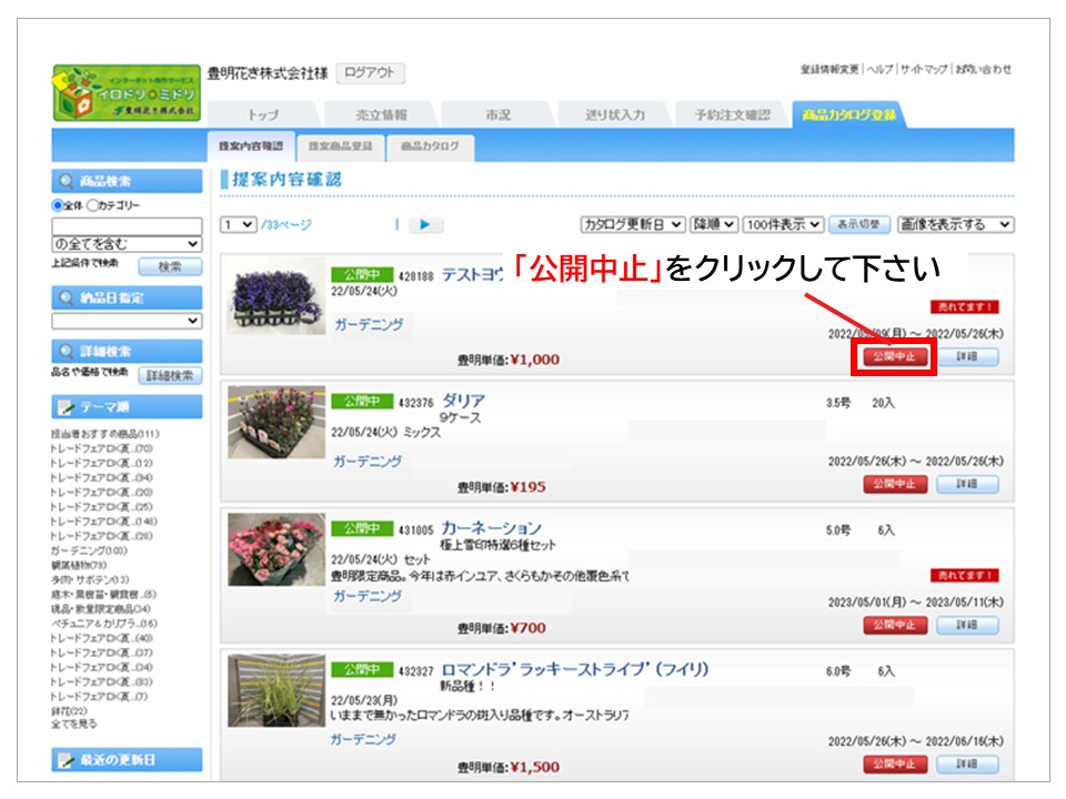 イロドリ*ミドリに公開している商品提案を公開中止にする方法と再公開する方法をご紹介いたします。