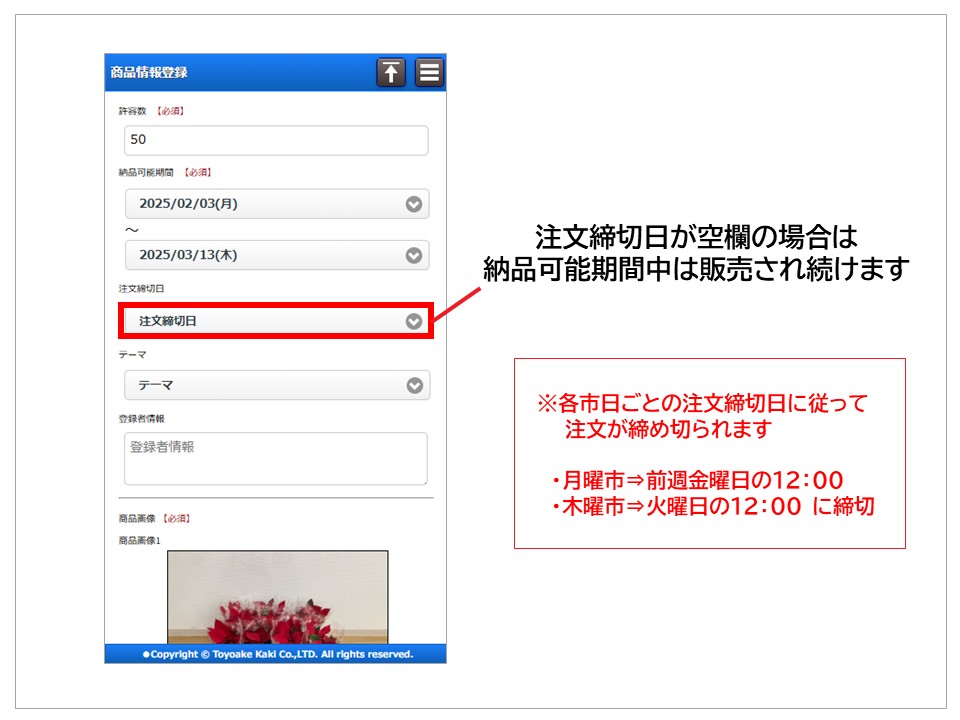 ※注文締切日の設定は任意となります