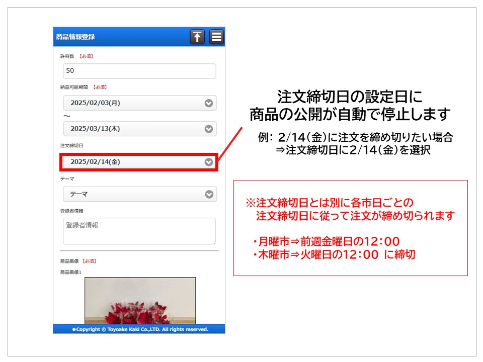 ※注文締切日の設定は任意となります