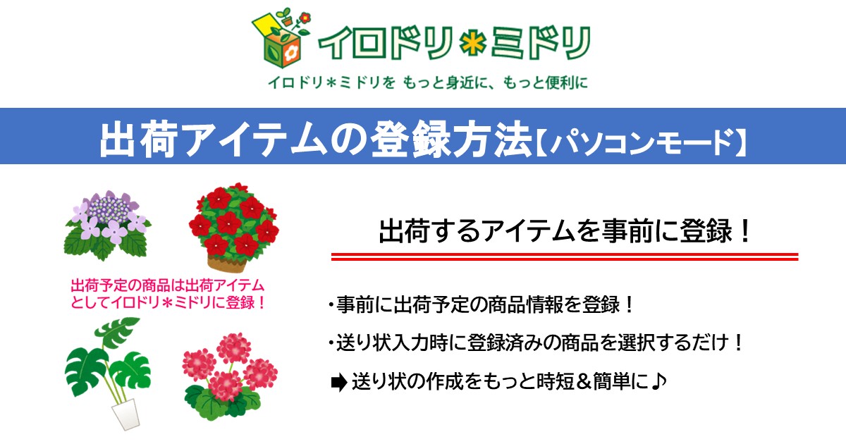 . イロドリ*ミドリで出荷送り状を作成する時に便利な「出荷アイテム登録」についてご紹介します! 出荷…