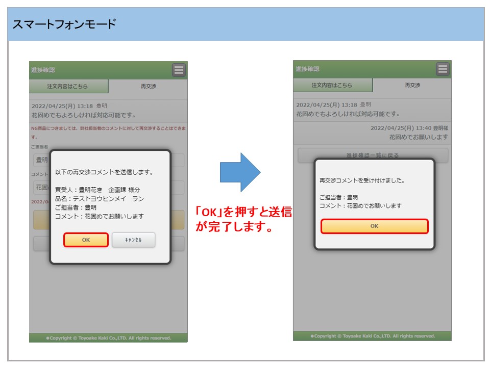 ⑤確認画面が表示されますので「OK」を選択し、送信を完了します。